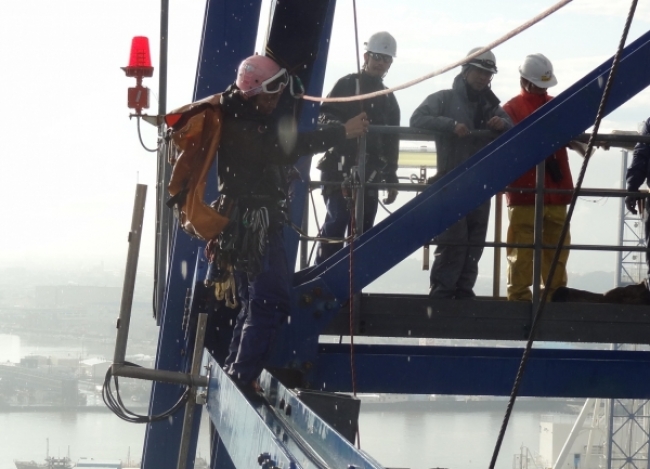 高所特殊 掘削船櫓上の航空障害灯交換 作業日当日は土砂降りでした。櫓の鉄骨上をビレイを取りながら慎重に進みます。風は弱かったので何とか作業は出来ましたが、雨のためなかなか作業がはかどりません。作業終了近く、あんなに降っていた雨もすっきりと晴れあがり、綺麗な二重の虹が架かりました。 作業日当日は土砂降りでした。櫓の鉄骨上をビレイを取りながら慎重に進みます。 工事のポイント 一覧へ戻る 次へ