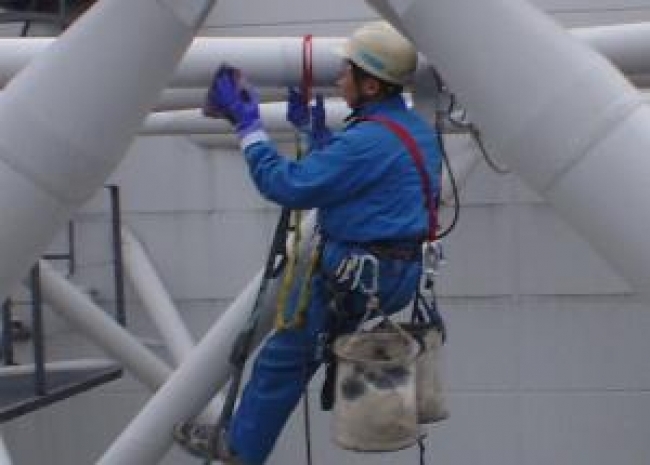 高所特殊 某ビル屋上 トラスパイプ清掃 屋上に設置されたトラスパイプの清掃。清掃対象となるトラスパイプ自体を作業足場とし、ロッククライミングギアとテクニックを駆使して作業を行いました。トラスパイプに巻きつけたナイロンスリングにエイダーをかけてフットスタンスとし、デイジーチェーンにフィフィで荷重することで、いかなる条件でも安定したワークポジショニングが可能となります。エイダー・デイジーチェーン2セットを使用し、墜落防止用にカーンマントルダイナミックロープをランニングビレー(中間確保)に通す事で得られる三重安全対策。 屋上に設置されたトラスパイプの清掃。清掃対象となるトラスパイプ自体を作業足場とし、ロッククライミングギアとテクニックを駆使して作業を行いました。 工事のポイント 前へ 一覧へ戻る 次へ