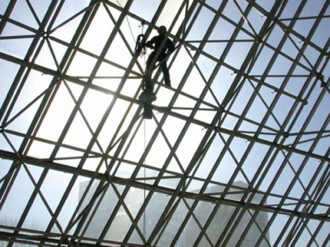 高所特殊 東京ドーム サンバイザー照明交換 サンバイザー下面の照明交換作業。作業者はロッククライミングで用いるエイダー・デイジーチェーン・フィフィを使う事で、両手の離せる安定した体勢(ワークポジショニング)を作ります。二人一組で作業を行い、一人は作業者。もう一人はロープを使用してその作業員の墜落防止確保を行います。地上にはバリケードを設置し、保安要員が歩行者の安全誘導を行います。 サンバイザー下面の照明交換作業。作業者はロッククライミングで用いるエイダー・デイジーチェーン・フィフィを使う事で、両手の離せる安定した体勢(ワークポジショニング)を作ります。 工事のポイント 前へ 一覧へ戻る 次へ