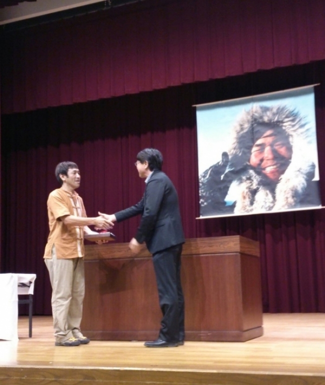 アドベンチャー 第18回植村直己冒険賞 田中幹也 授賞式にて中貝豊岡市長と記念品贈呈の後、固い握手。記念公演の模様。タイトルは「厳冬季カナダを生きぬく~雪と氷の2万2千キロ踏破~」。弊社代表加藤とともに。 授賞式にて中貝豊岡市長と記念品贈呈の後、固い握手。 工事のポイント より詳しい情報が欲しい方は植村直己冒険館のサイトでご確認ください。 >植村直己冒険館ホームページ 2012受賞者の紹介 一覧へ戻る 次へ