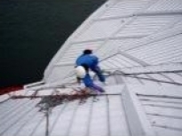 ロープ作業にによる近接目視、打診調査です。
