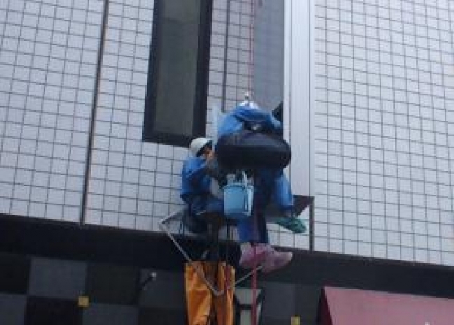 袖看板の清掃や管球の交換作業もロープ作業にて行います。 高所作業車等の使用に比べ、作業時間の制約や、道路封鎖の影響が軽微に済むメリットがあります。
